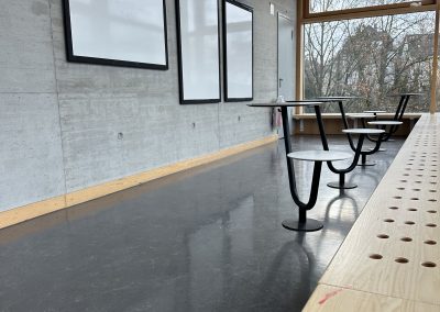 • Unsere neuen Arbeitsplätze für Kleingruppen und eine Klimmzugstange vor dem Verwaltungstrakt